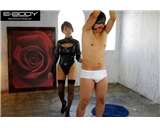 盛りあがった乳房にギュッとエグれたクビレのボンッ!キュッ!ボンッ!ボディの女肉に喰い込む漆黒の生地が肉感を倍増させるボンデージ濃厚ファック!屈強な男たちに全く見劣りしない迫力満点な乳と尻で肉棒を攻めまくるエリーは瞬きが出来ないくらいのスピーディな展開で貪欲な貪り合いを披露する!